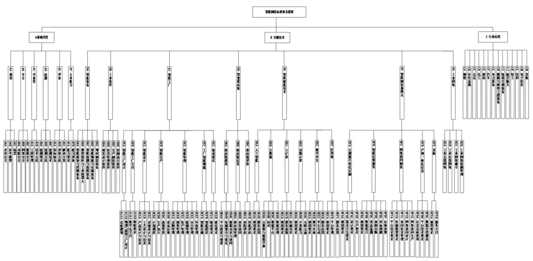 智能制造标准体系框架图包含了智能制造标准体系的基本组成单元,具体包括A基础共性、B关键技术、C行业应用等3个部分,如图3所示。